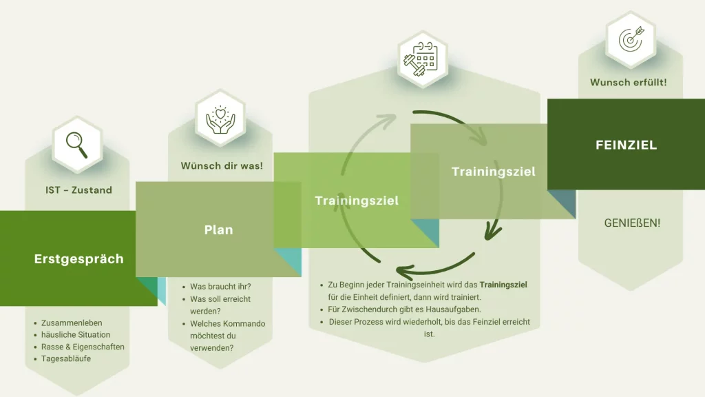 Als qualifizierter Hundetrainer biete ich maßgeschneidertes, alltagsnahes Training bei dir vor Ort an. Gemeinsam analysieren wir deine Herausforderungen und Ziele – und entwickeln daraus ein maßgeschneidertes Trainingskonzept, das zu dir und deinem Hund passt.